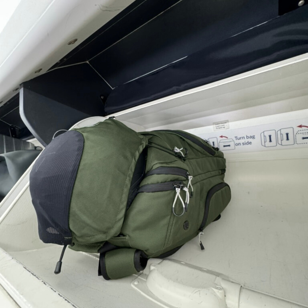 Approved Carry-On with Helmet Attached on Top